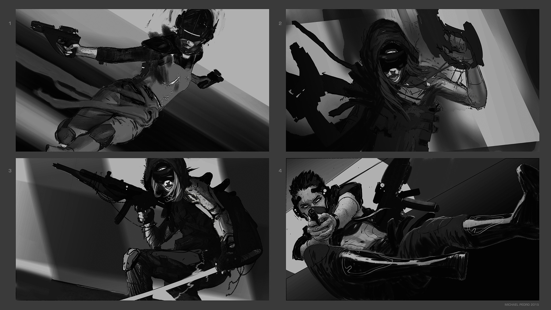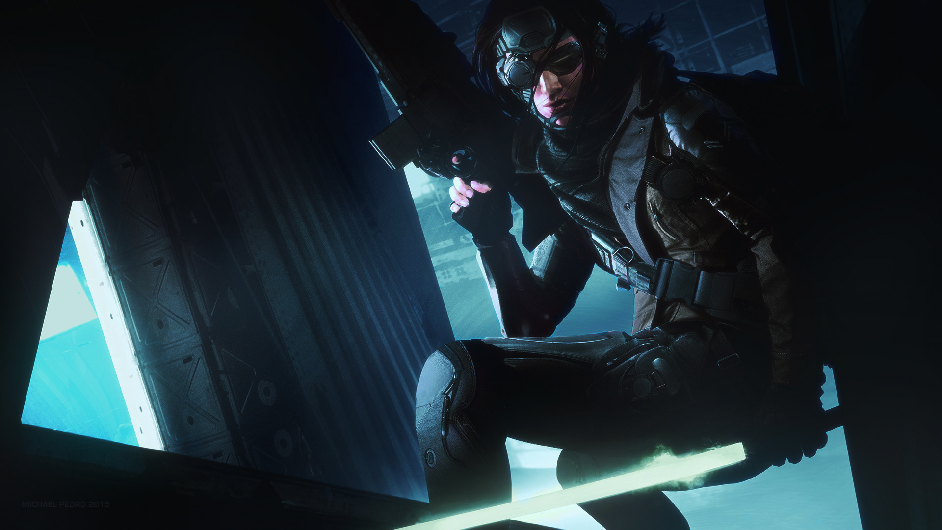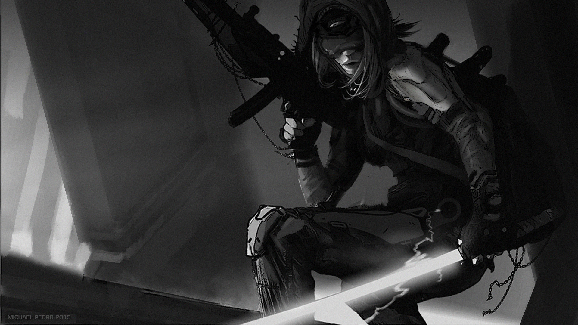 Concept for a futuristic mercenary (attainable-future), not too cyborg or robotic.